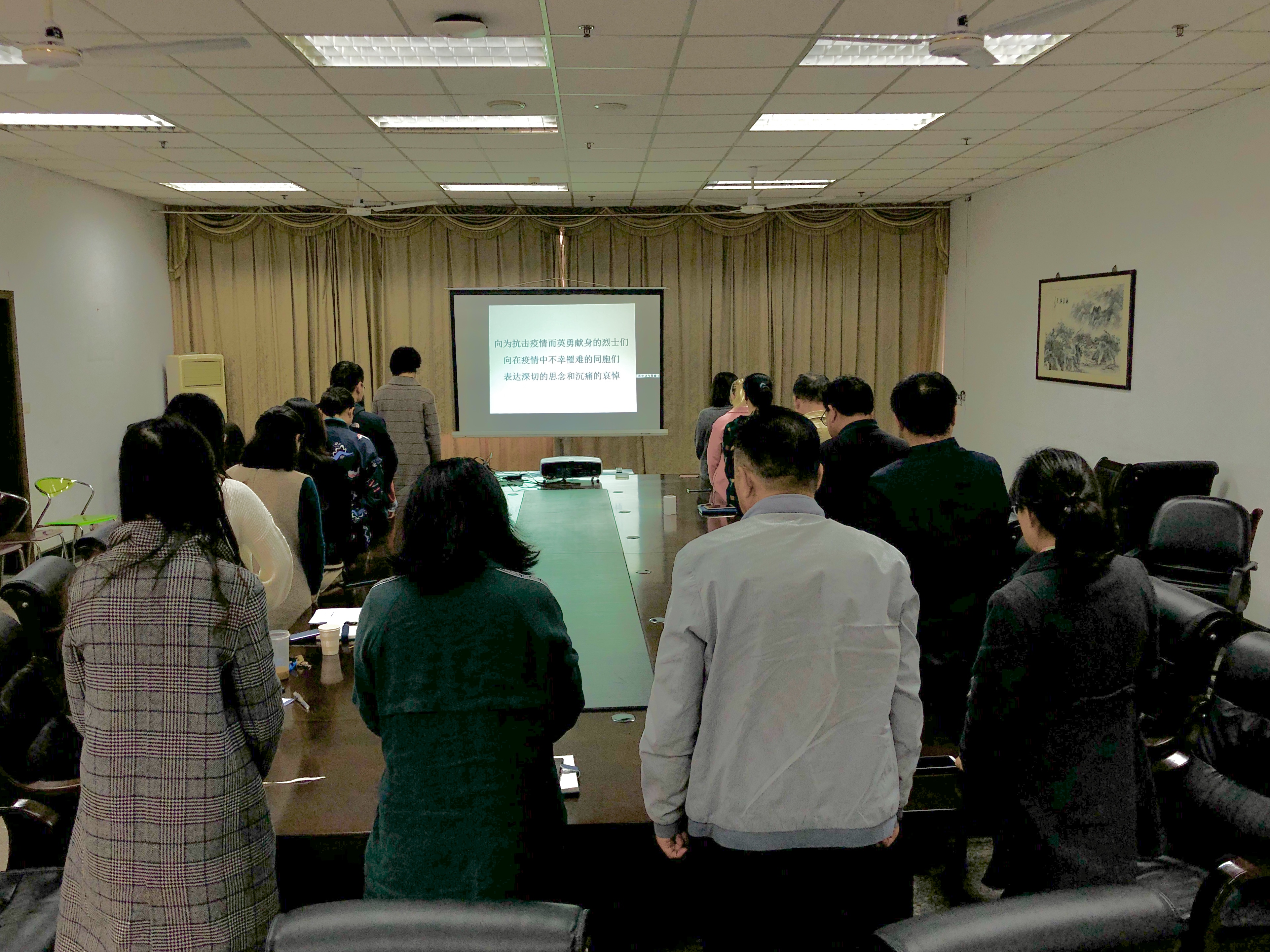 此次学习会采用接龙朗诵的形式,朗诵过程中,每个人都以饱满的激情感同深受当时的抗疫情景。当康敏馆长读到“向为抗击疫情而英勇献身的烈士们,向在疫情中不幸罹难的同胞们表达深切的思念和沉痛的哀悼”时,全体老师起立,面向投影屏默哀一分钟。