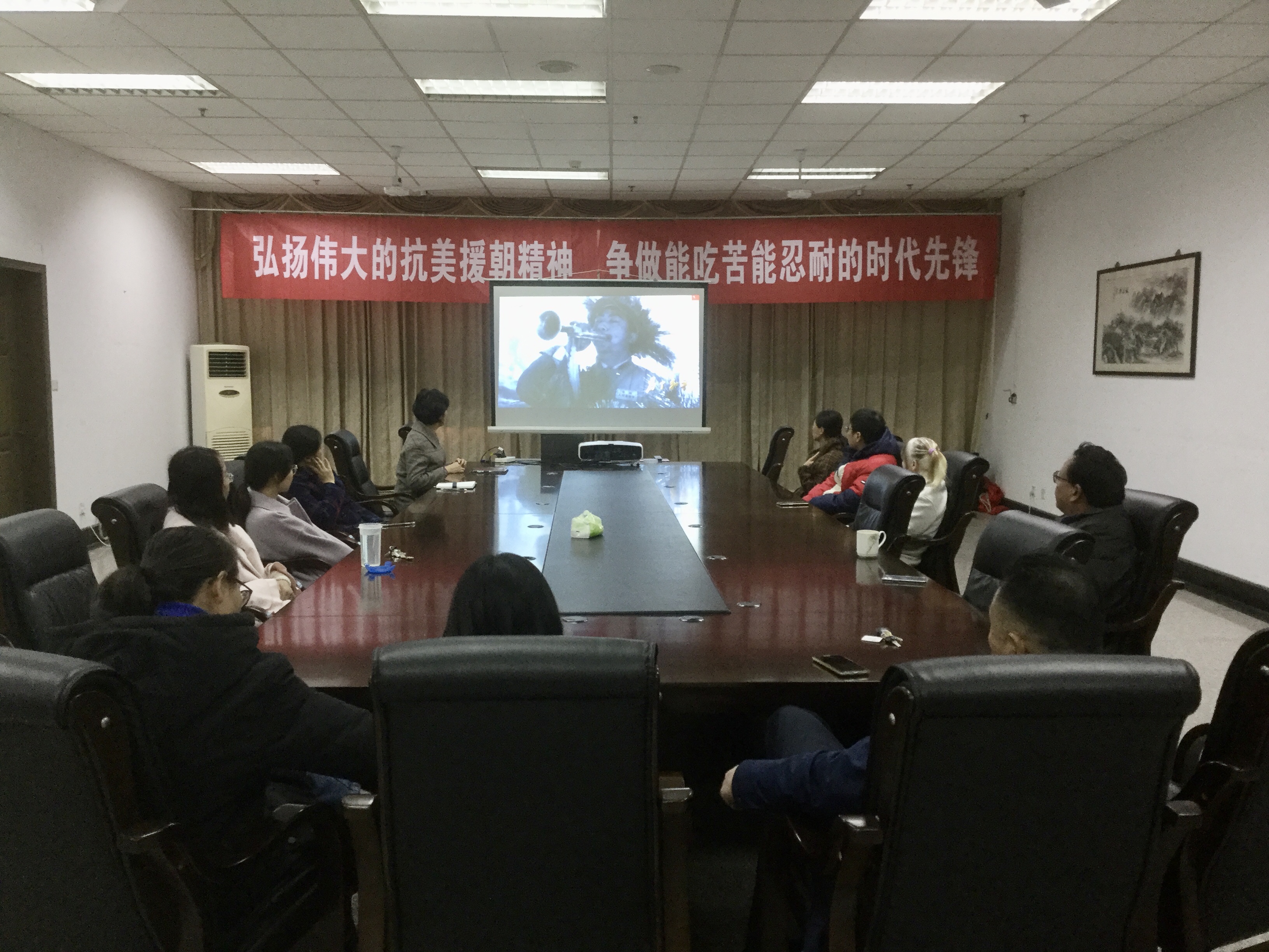 11月30日下午,在图书馆310会议室全体党员和积极分子观看了大型纪录片《为了和平》第三集--《血性迸发》。我们的志愿军为什么能够一直向前、奋不顾身,朝鲜战场上如此艰苦、如此危险、如此残酷,中国人民志愿军为什么能无所畏惧、向死而生,血战到底!靠的就是志愿军的血性魂魄。军事科学院原军事历史研究部副部长齐德学说,第一就是因为党的坚强领导;二是我们军人的素质,他们勇往无前的精神形成压倒一切敌人的态势而不为敌人所屈服。特别能战斗时志愿军的血性,特别能吃苦特别能忍耐也是志愿军的血性。