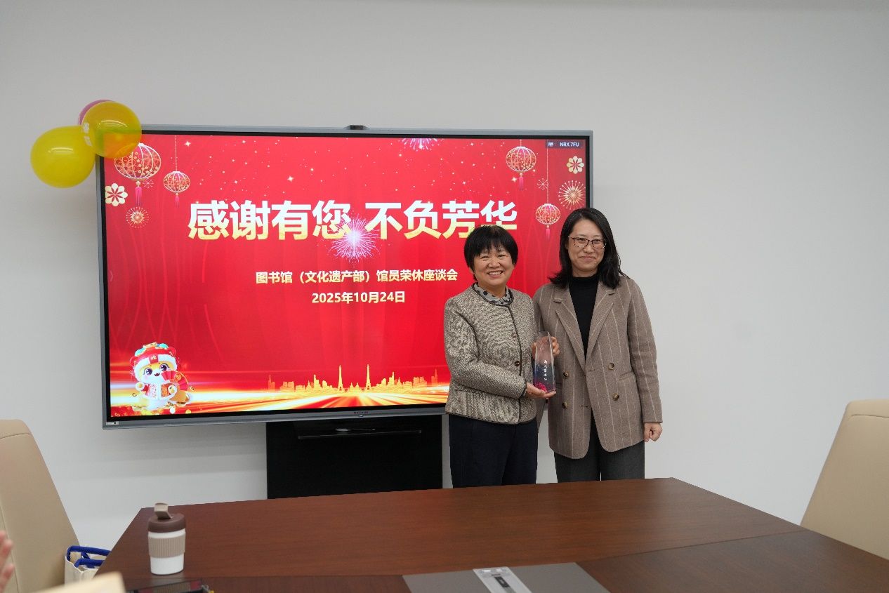 2025年10月24日上午,南京农业大学章之汶图书馆内暖意融融,一场以“感谢有您 不负芳华”为主题的荣休仪式在此隆重举行。四位为图书馆奉献数十载青春的资深馆员——王俊琴、李爱平、陆芹英、陈少华正式荣休,全体馆领导、各科室馆员代表齐聚一堂,共同见证这一温情时刻。仪式由图书馆(文化遗产部)工会主席童云娟主持。