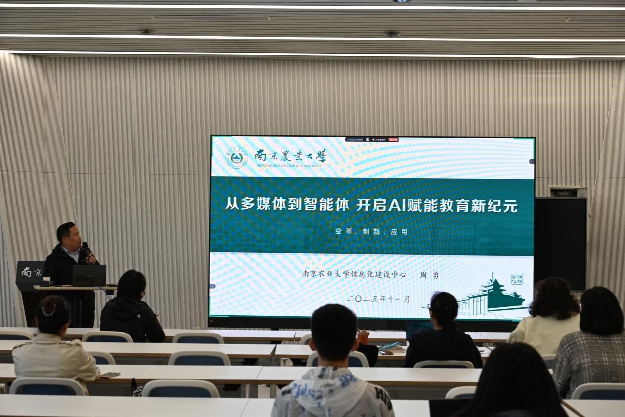 11月12日下午,南京农业大学“AI+1小时训练营”系列学术活动第五场专题讲座《AI作图与视频生成攻略》在滨江校区章之汶图书馆一楼培训室顺利举行。本次讲座由南京农业大学信息化建设中心副主任周勇主讲,从图片、音频、视频等媒体类型交流AI赋能的应用场景和实用攻略。